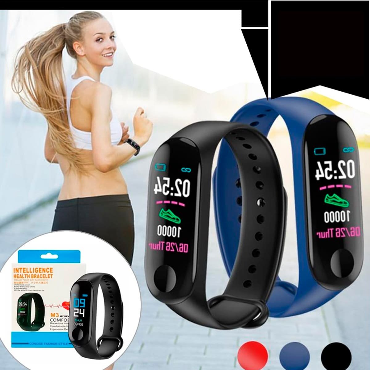 El Smart Bracelet M3 satisfará tus necesidades con una experiencia agradable. El rastreador de actividad de salud inteligente puede proporcionar un registro preciso de ejercicio y sueño, puede enviar los datos a tu teléfono de manera conveniente y compartir la información con amigos de inmediato.