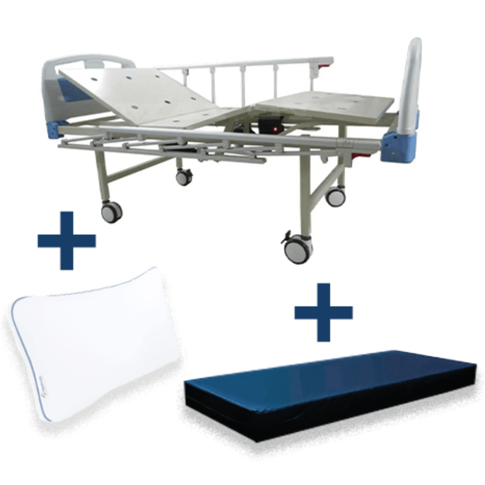 Cama hospitalaria eléctrica de cuatro planos cabecero y piecero en ABS, barandas en aluminio CM-052 + Colchón ortopédico Antiescaras, Forro antifluido Tipo Clínico + Almohada Duo Sense, con dos capas de materiales permitirán que pases la mejor noche de tus sueños.