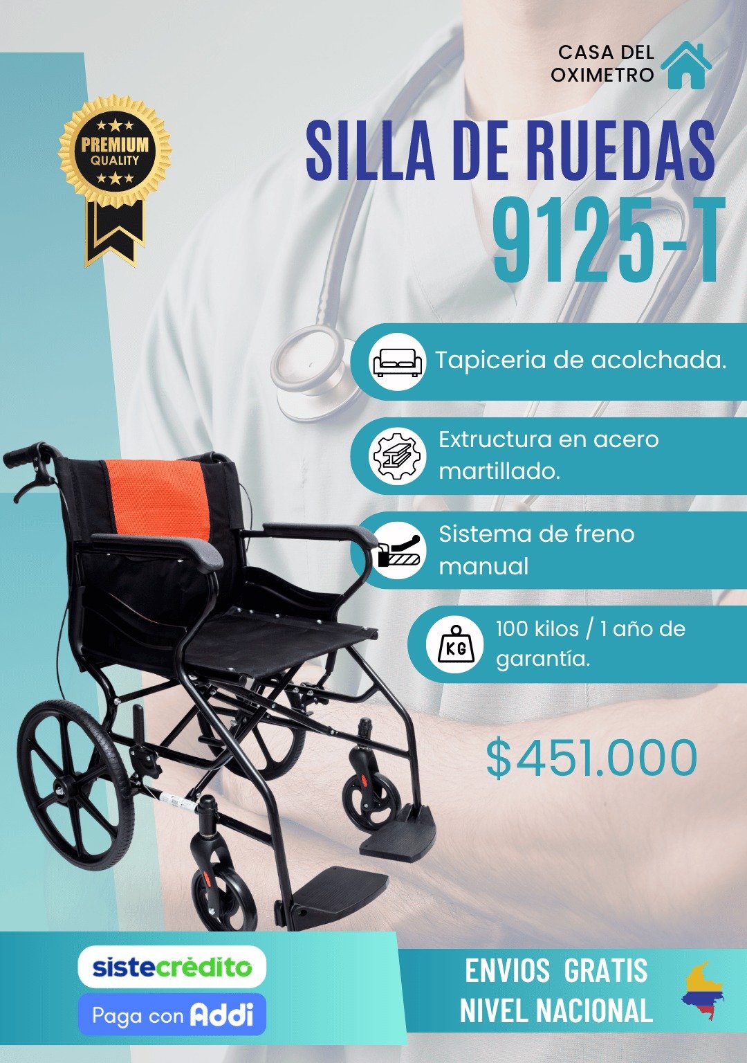 – Silla de ruedas estándar  con llanta maciza con 6 meses de garantía.